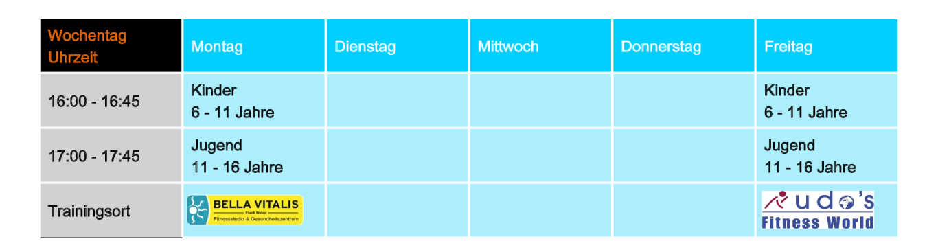 An Feier- und Brückentagen sowie in den Ferien findet kein Training statt!